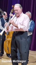 The quartet perform all of the standard Dixieland repertoire plus uniquely arranged features such as Hamish’s outstandingly popular version of “Stranger on the Shore.” The ensemble have recorded five CDs for the Corban label and have appeared in concerts and at jazz festivals all over Scotland.